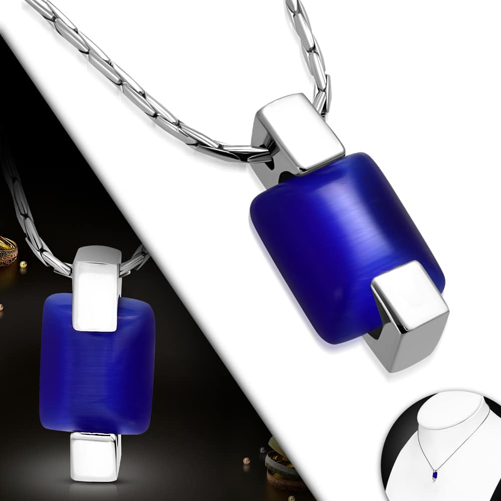 Ezüst színű nyaklánc, KÉK cirkónia kristályos téglalap formájú medállal