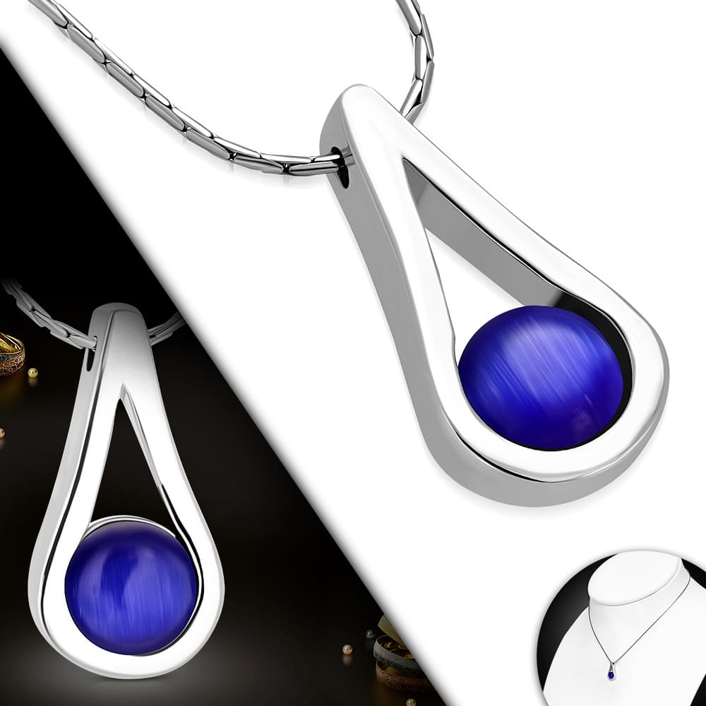 Ezüst színű nyaklánc, KÉK színátmenetes ovális medállal