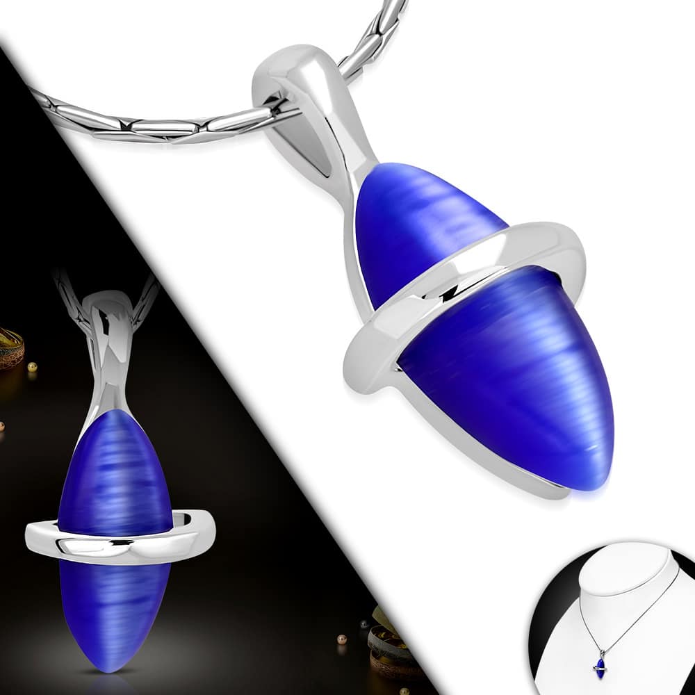 Ezüst színű nyaklánc, KÉK színátmenetes ovális medállal