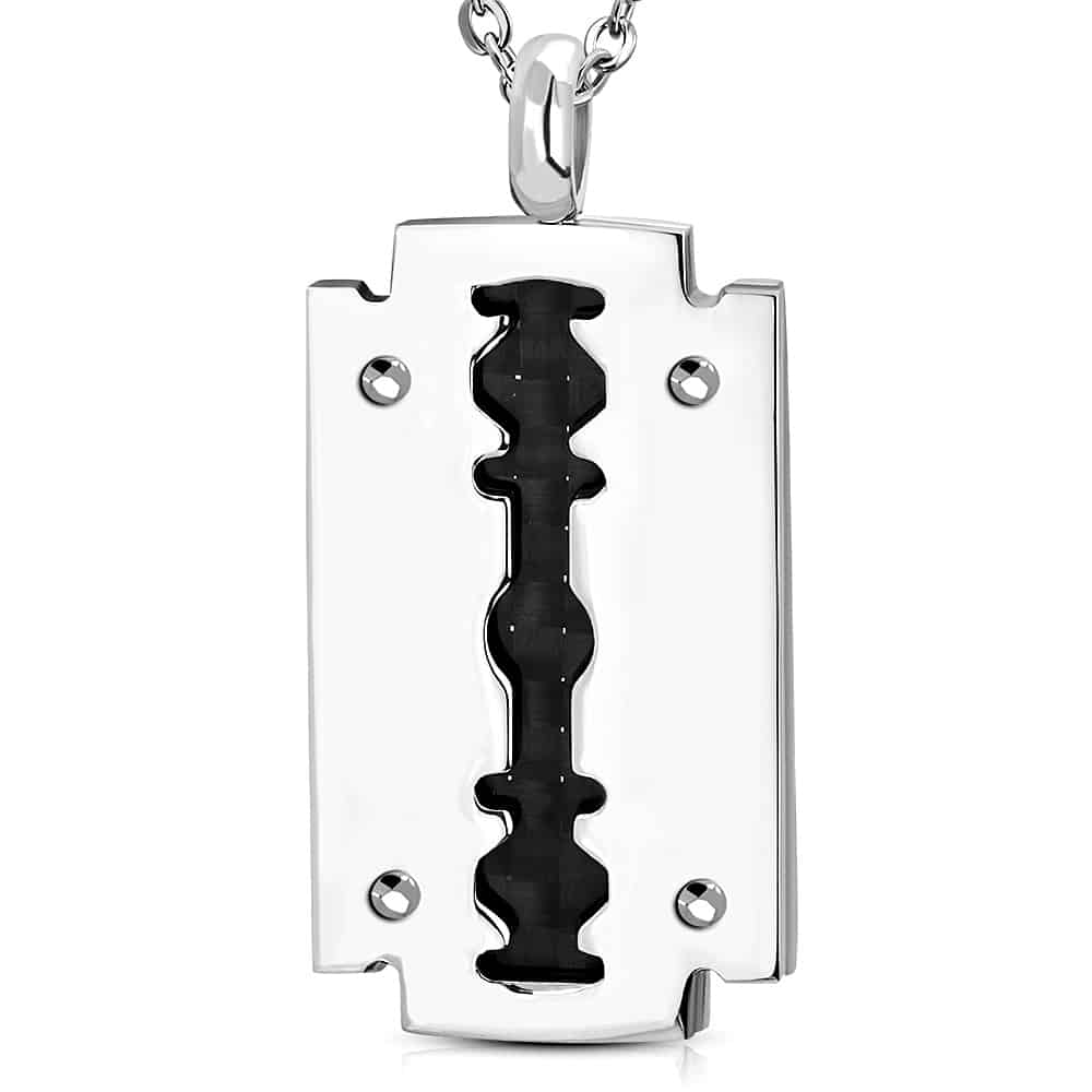 Ezüst színű, penge alakú nemesacél medál