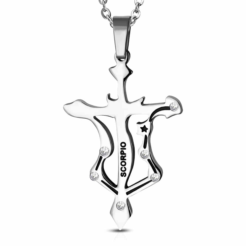 Ezüst színű, Skorpió horoszkóp nemesacél medál, cirkónia kristállyal
