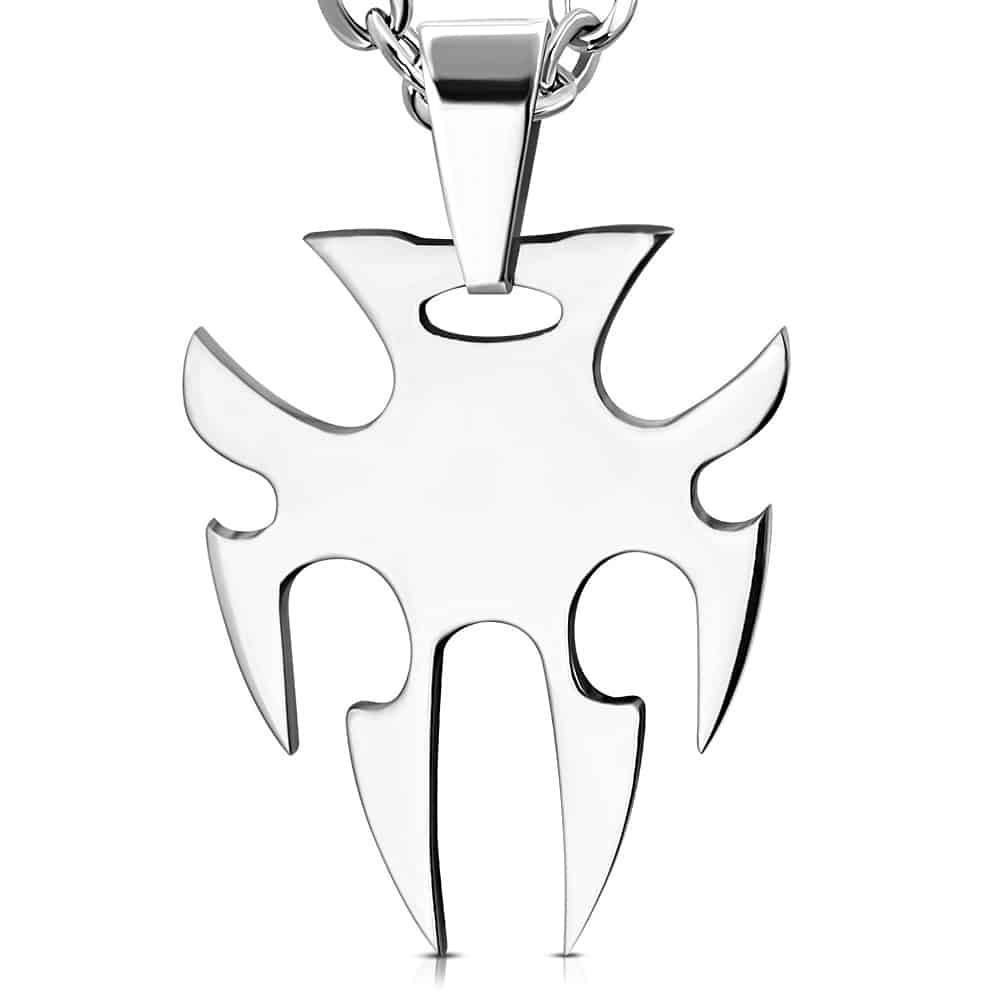 Ezüst színű, törzsi kereszt alakú nemesacél medál