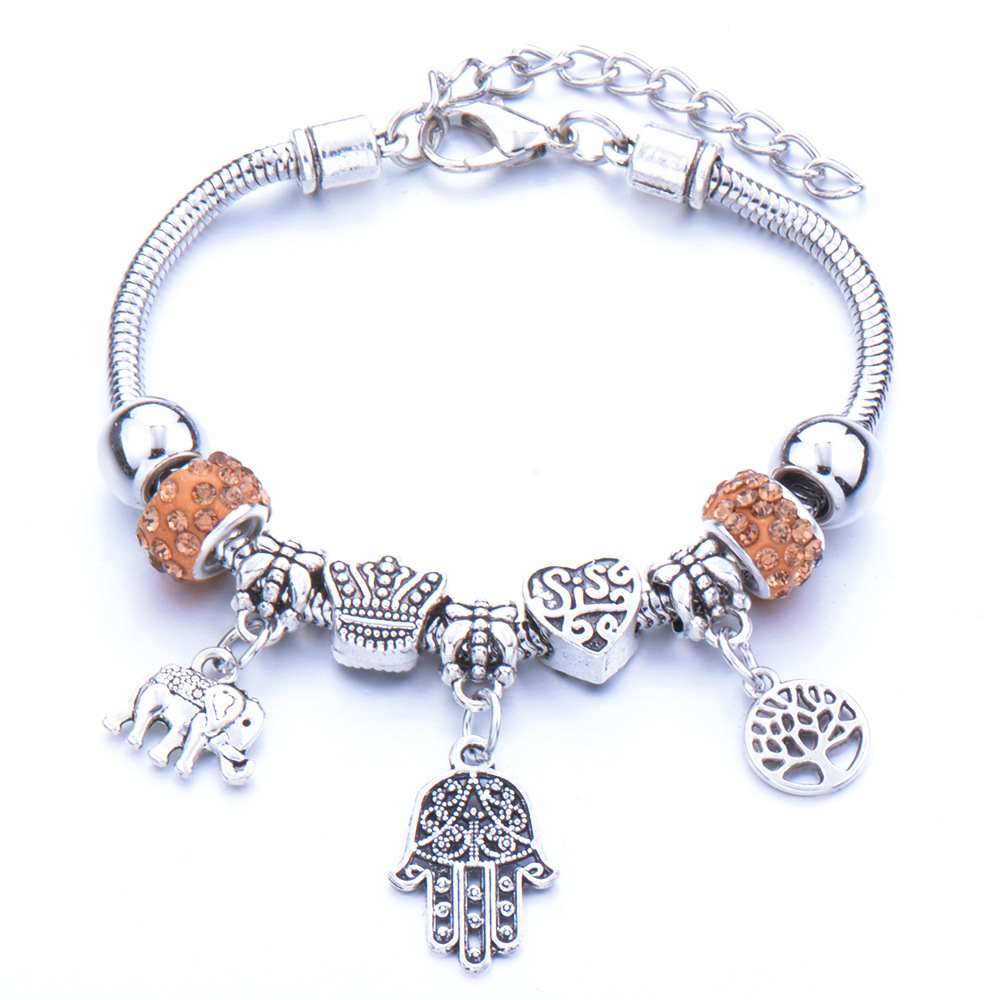 Fatima keze pandora stílusú charm kristályos karkötő – Borostyán