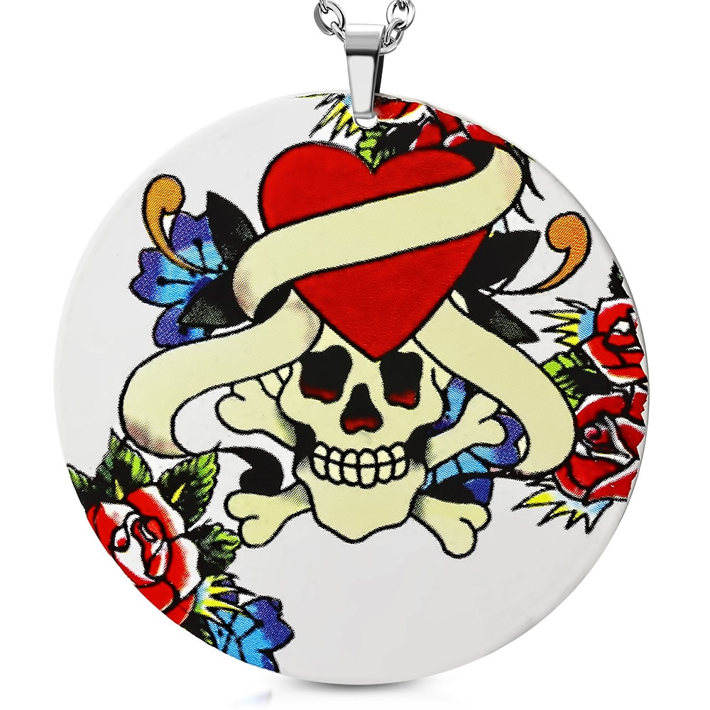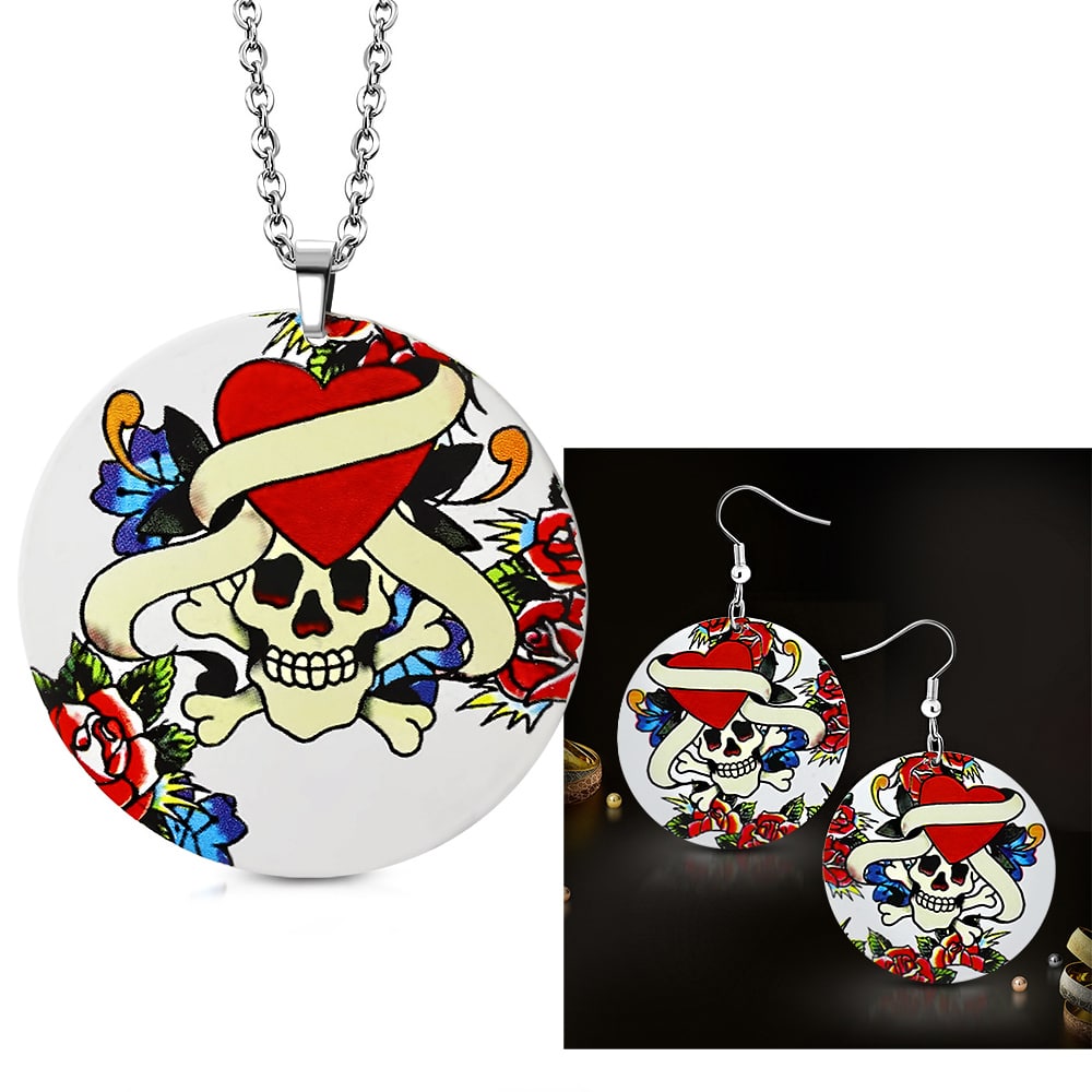 Fehér színű, kerek nemesacél szett, kalóz koponya mintás medállal és fülbevalóval