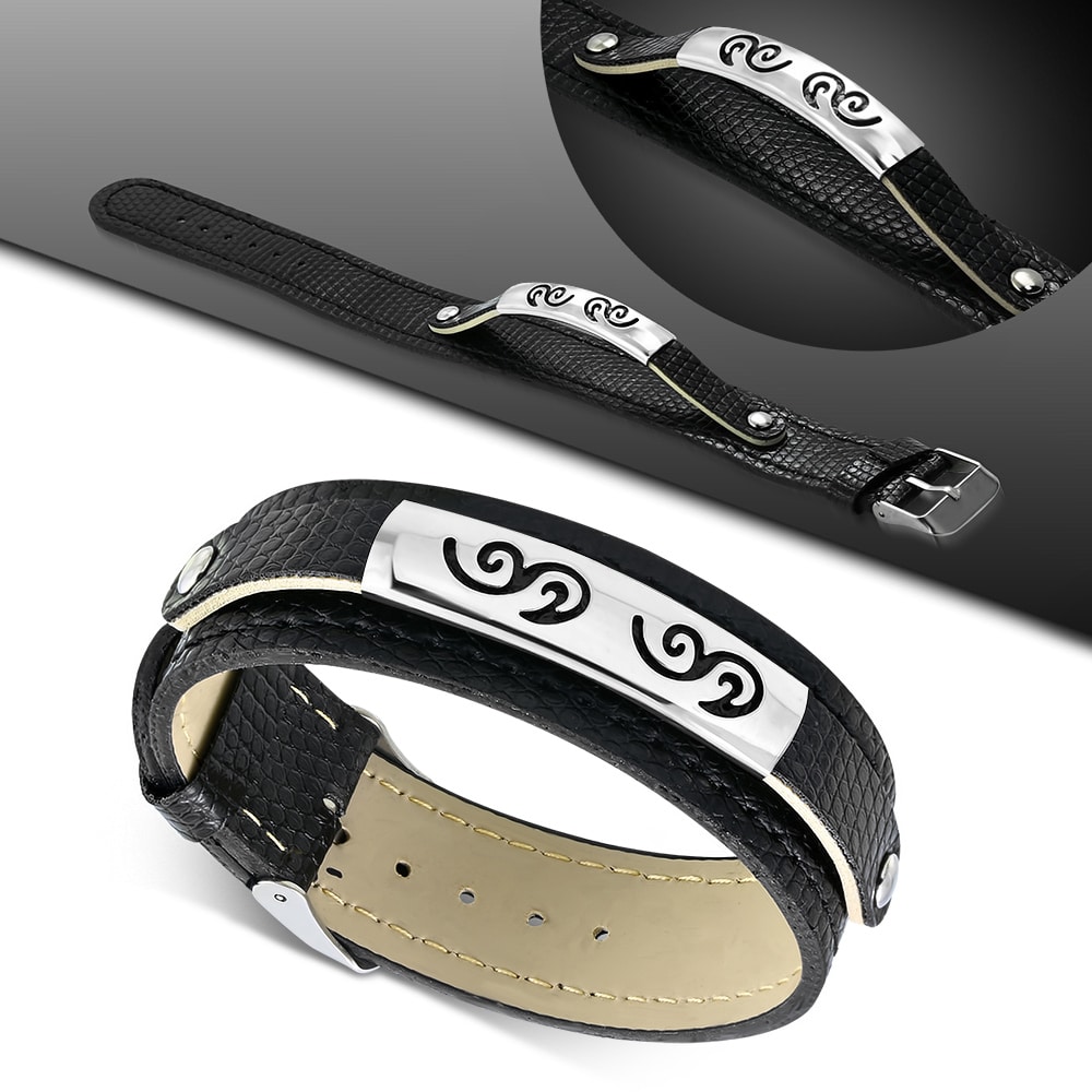 Fekete bőr karkötő, lézervágott mintával.