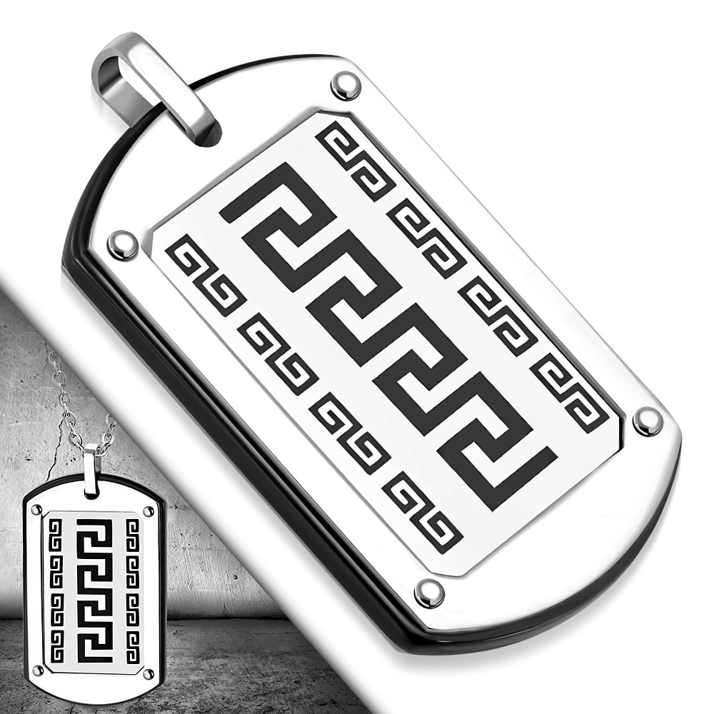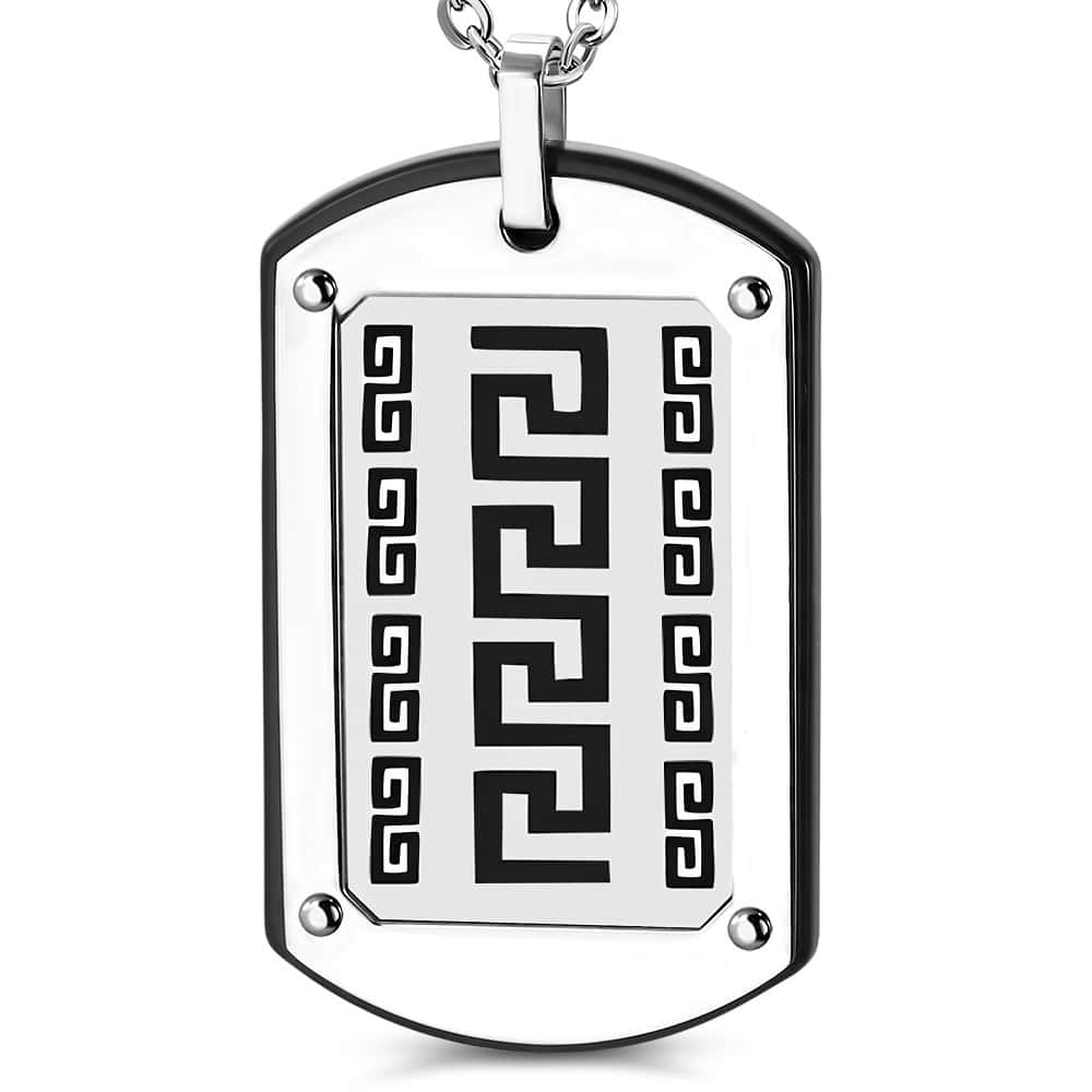 Fekete és ezüst színű, görög mintás nemesacél medál