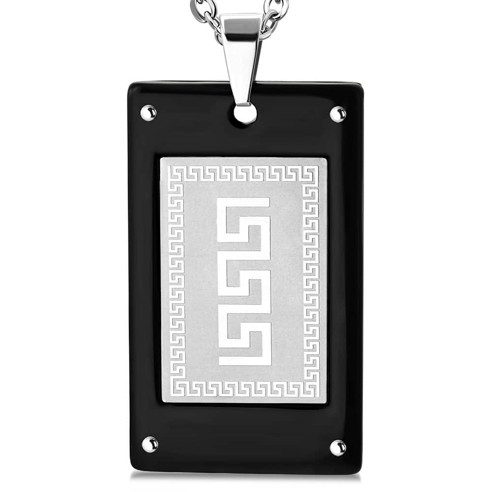 Fekete és ezüst színű, görög mintás nemesacél medál