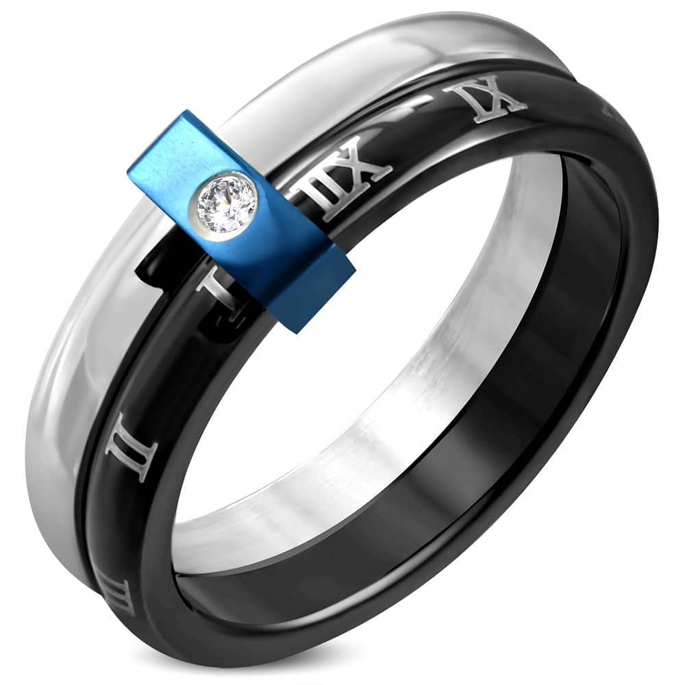 Fekete és ezüst színű nemesacél gyűrű ékszer, cirkónia kristállyal