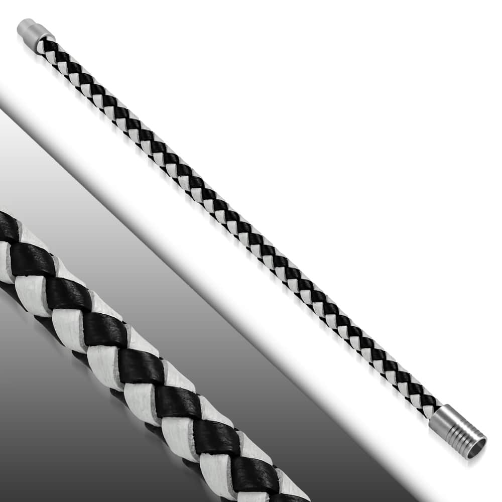 22 cm-es fekete és fehérszínű bőr karkötő nemesacél zárral – Flame
