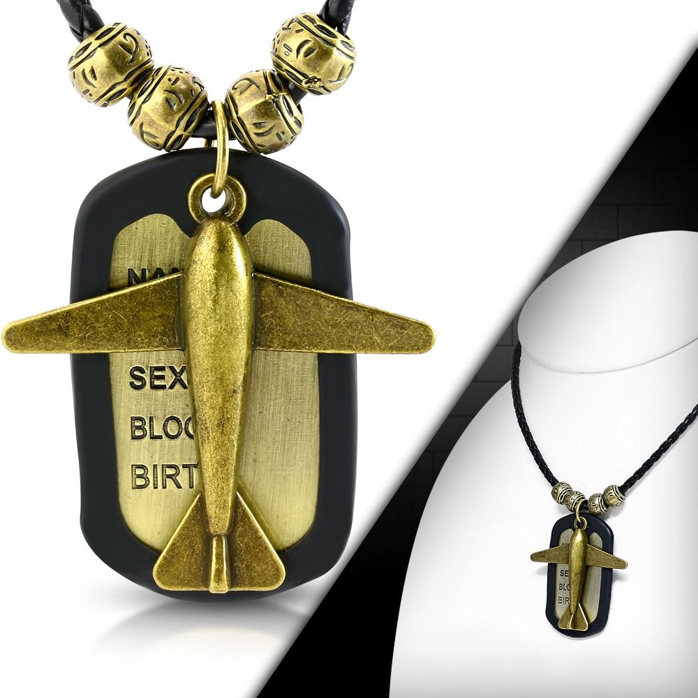 Fekete, fonott bőr nyaklánc, repülőgép alakú medállal