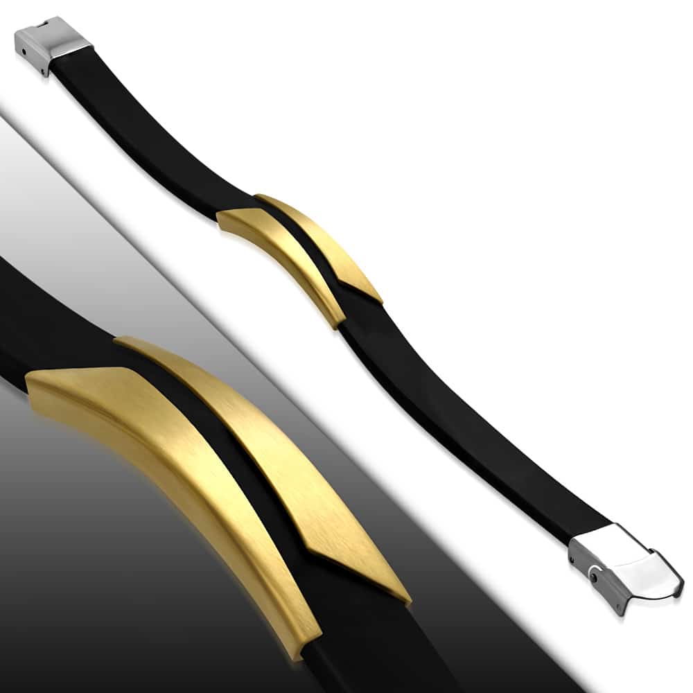 Kaucsuk karkötő, arany – ezüst színű nemesacél dísszel