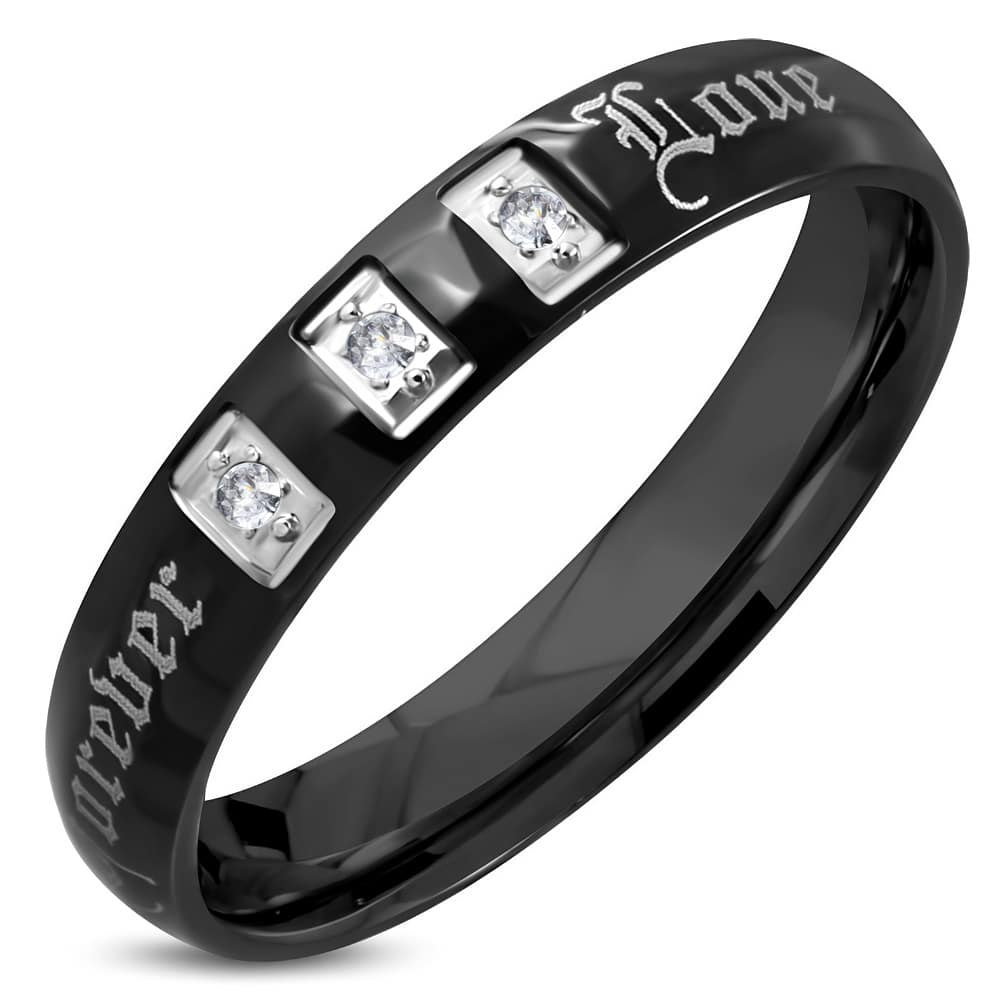 Fekete színű, cirkónia kristályos nemesacél gyűrű, Forever love felirattal