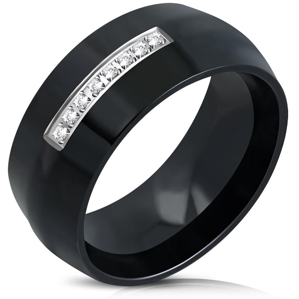 Fekete színű nemesacél gyűrű cirkónia kristályokkal