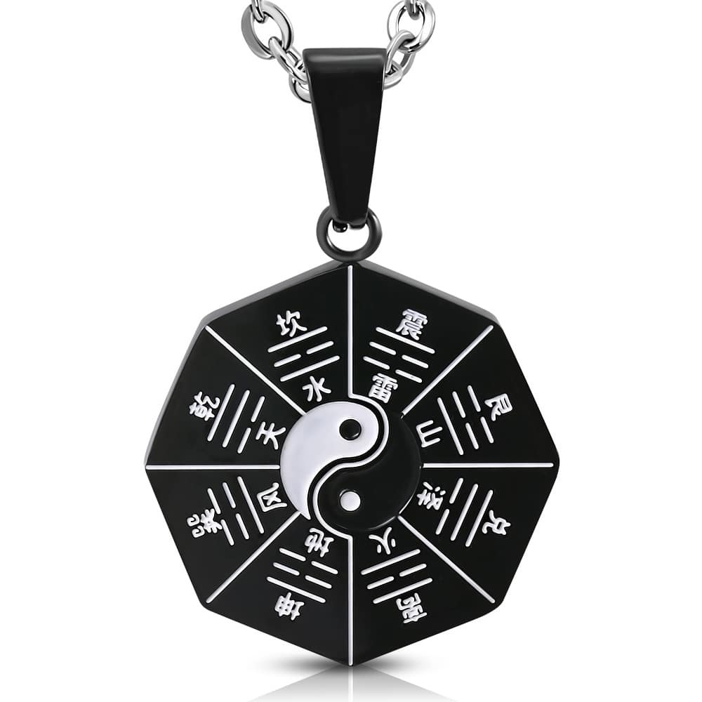 Fekete színű, nyolc szögletes nemesacél medál Yin-Yang mintával