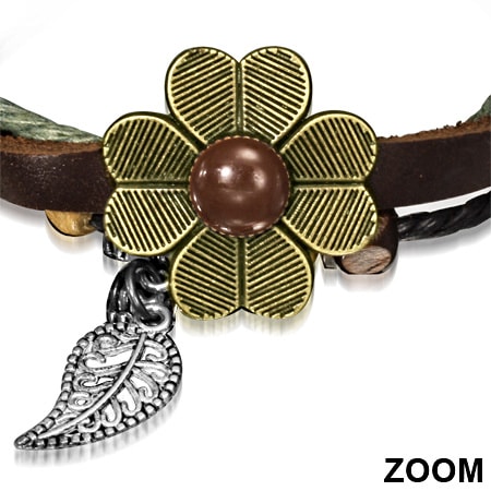 Flower Festival többsoros bőr karkötő nemesacél dísszel