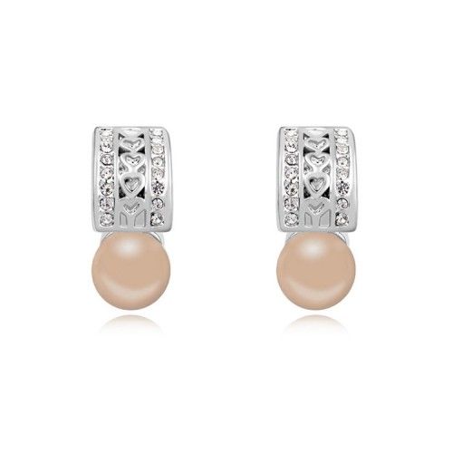 Chloe rózsa arany színű kristályos fülbevaló fehér gyönggyel és pici szívvel ajándék díszdobozban
