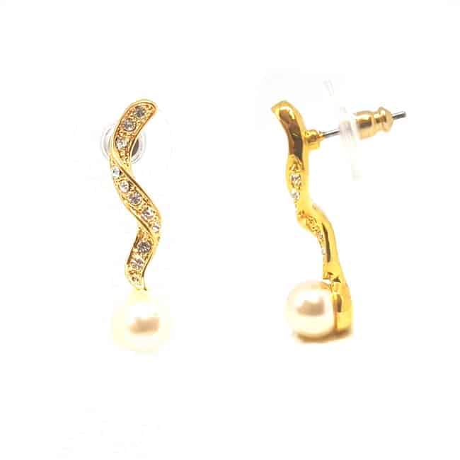 Arany színű gyöngyös fülbevaló kristályokkal díszítve ajándék díszdobozban