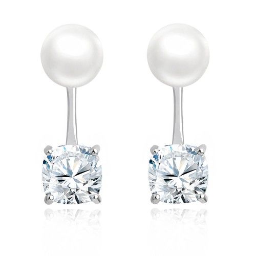 Chloe ezüst színű fülbevaló, fehér gyönggyel és pici szívvel ajándék díszdobozban