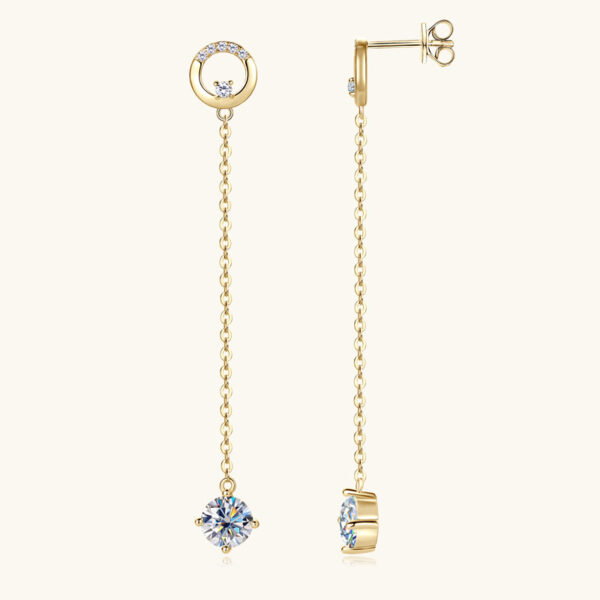 • Hosszú 14K aranyozott lógós ezüst fülbevaló - 1 karátos Moissanite gyémánt kövekkel