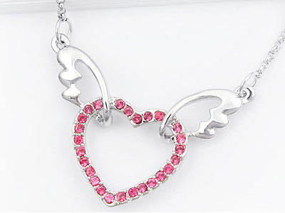 Gloria – Kristályos nyaklánc szárnyon függő pink szív medállal