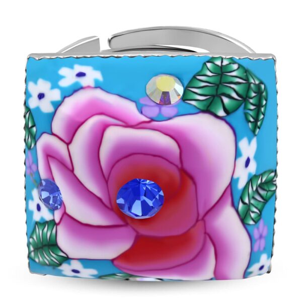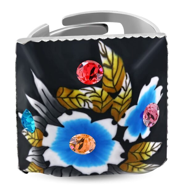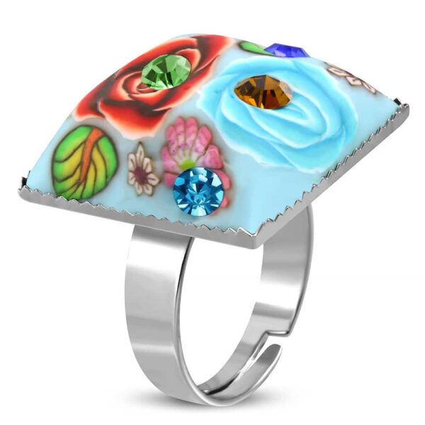 • négyzet alakú, színes virág mintás állítható nemesacél gyűrű ékszer cirkónia kristállyal