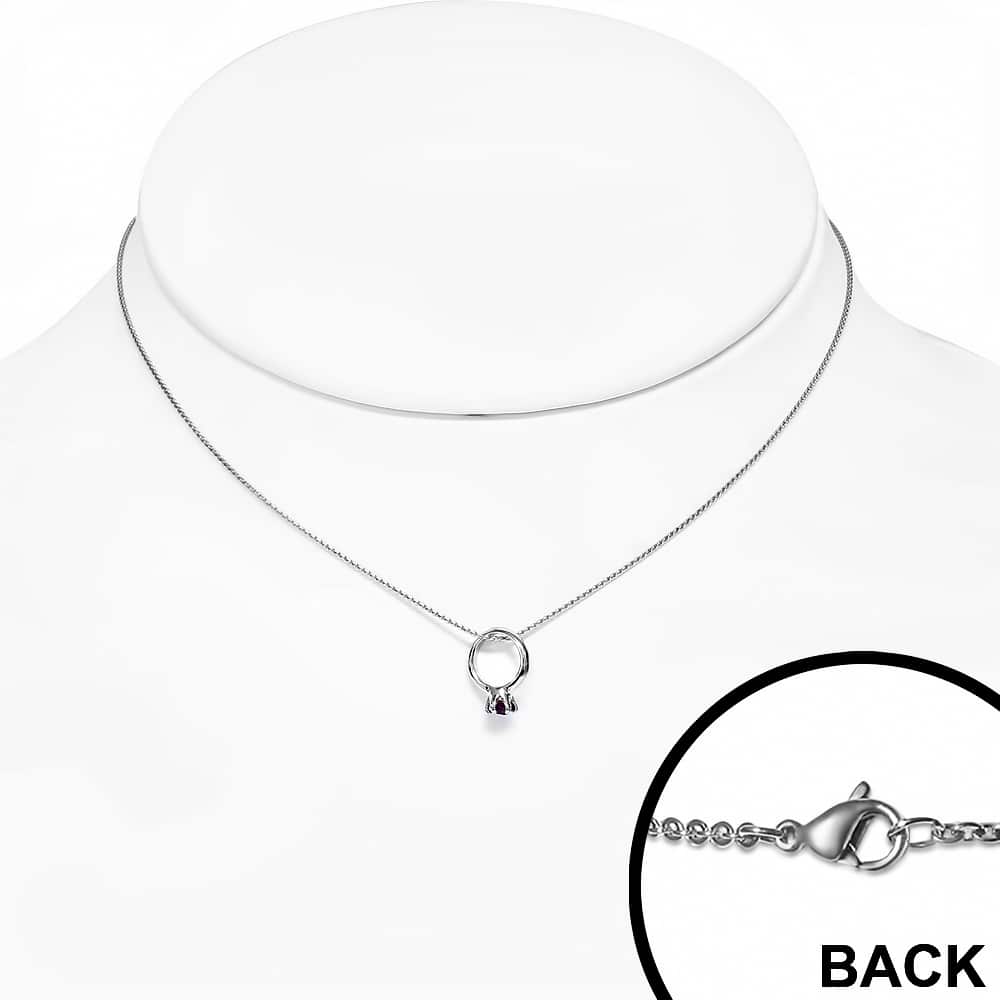 Gyűrűs, cirkónia kristállyal díszített ezüst színű nyaklánc