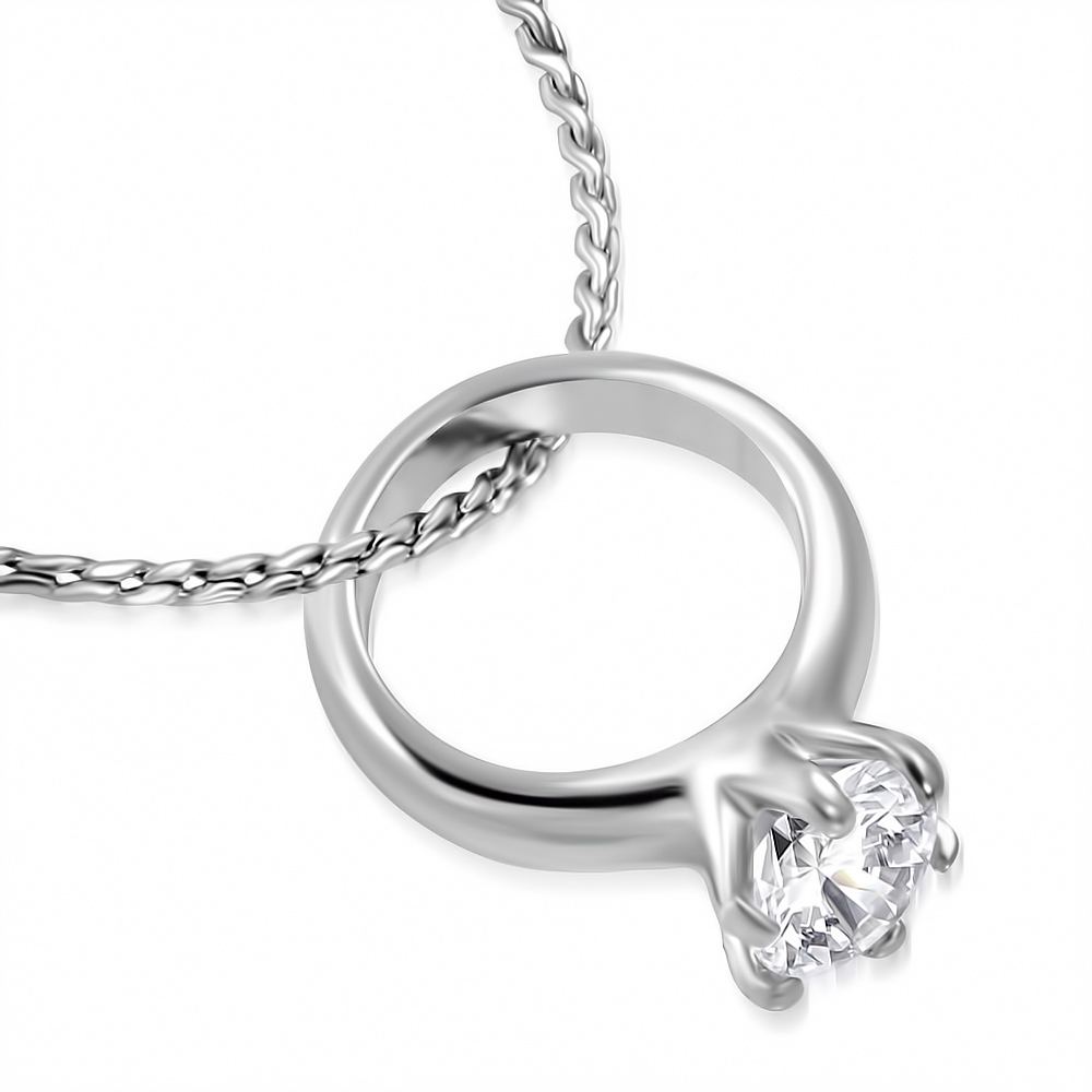 Gyűrűs, cirkónia kristállyal díszített ezüst színű nyaklánc