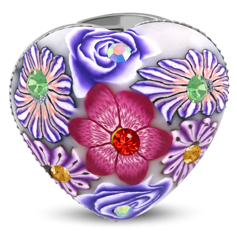 szív alakú – virág mintával és cirkónia kristállyal díszitve – nemesacél foglalatban női gyűrű