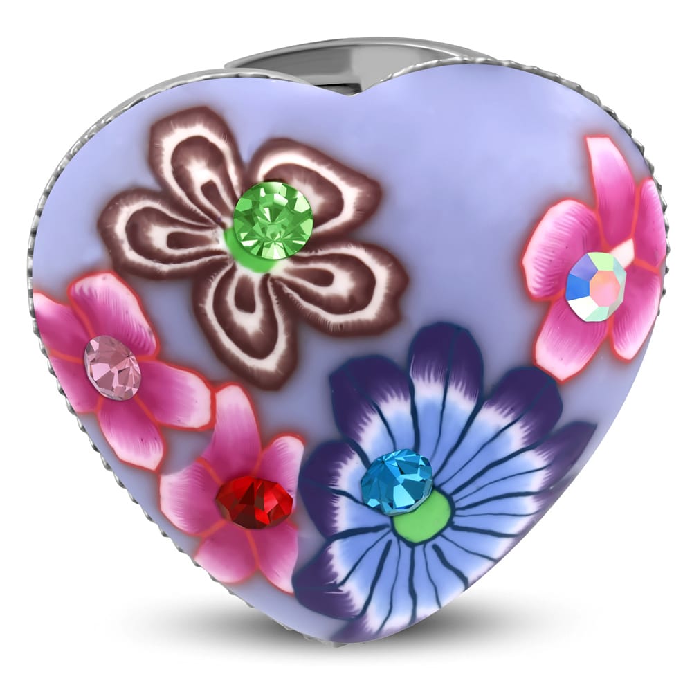 szív alakú – virág mintával és cirkónia kristállyal díszitve – nemesacél foglalatban női gyűrű
