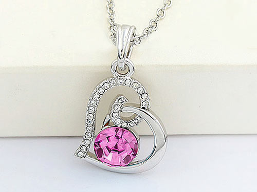 Heart – Kristályos nyaklánc szívalakú pink köves medállal