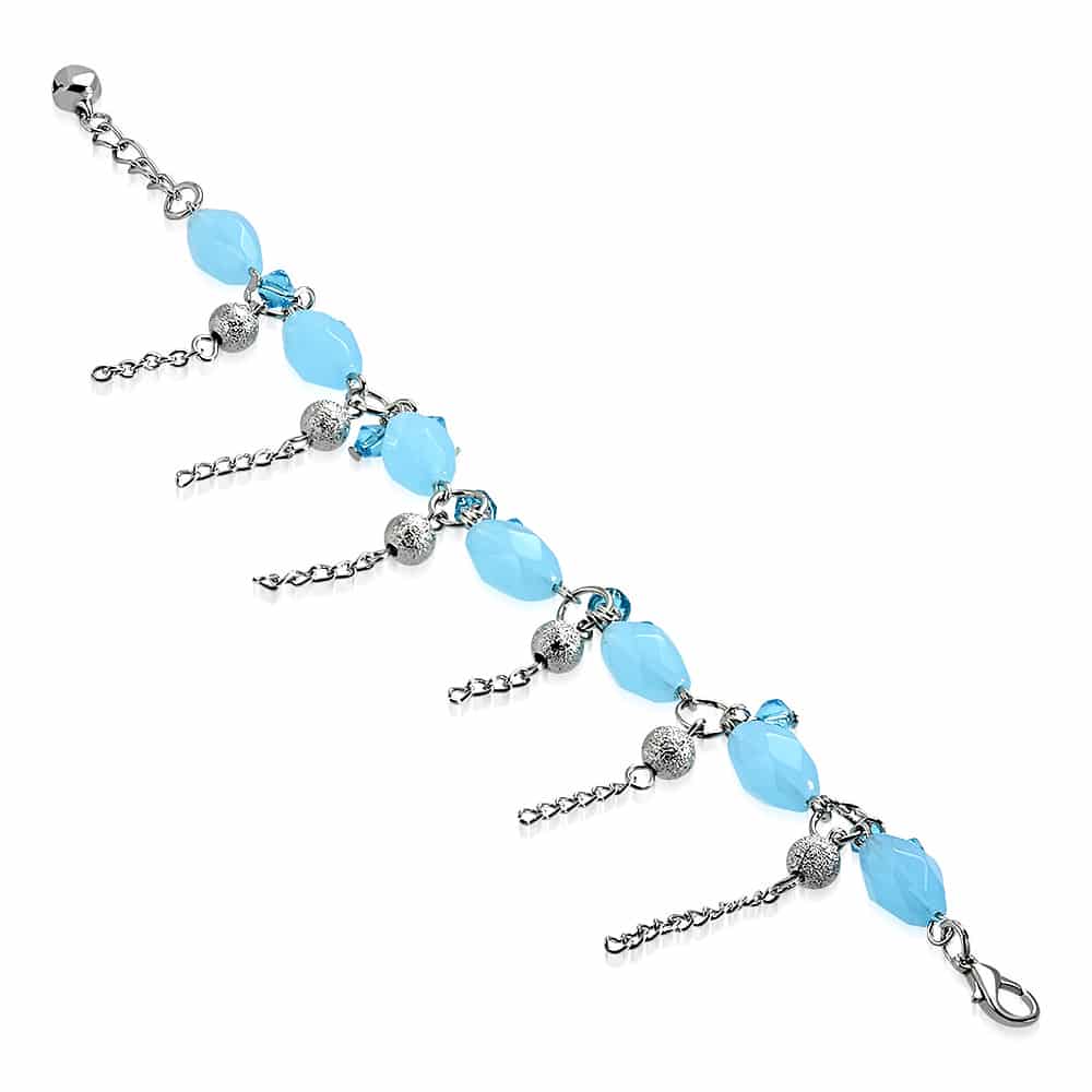 Heather – Ezüst színű világoskék színű gyöngyökkel díszített nemesacél karkötő