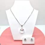🌟 Alapanyag: a nyaklánc és a fülbevaló is ezüst színű nemesacélból, másnéven antiallergén orvosi fémből készült, amely tartós viseletet, csillogást biztosít. Nem kopik, érzékeny bőrűek és fémérzékenyek is bátran viselhetik.