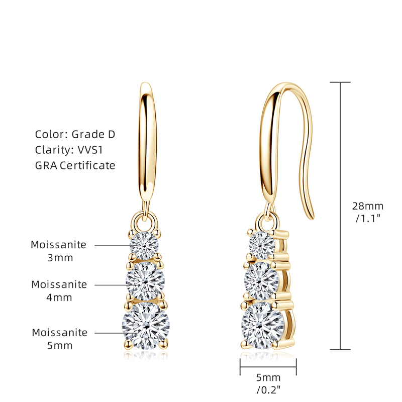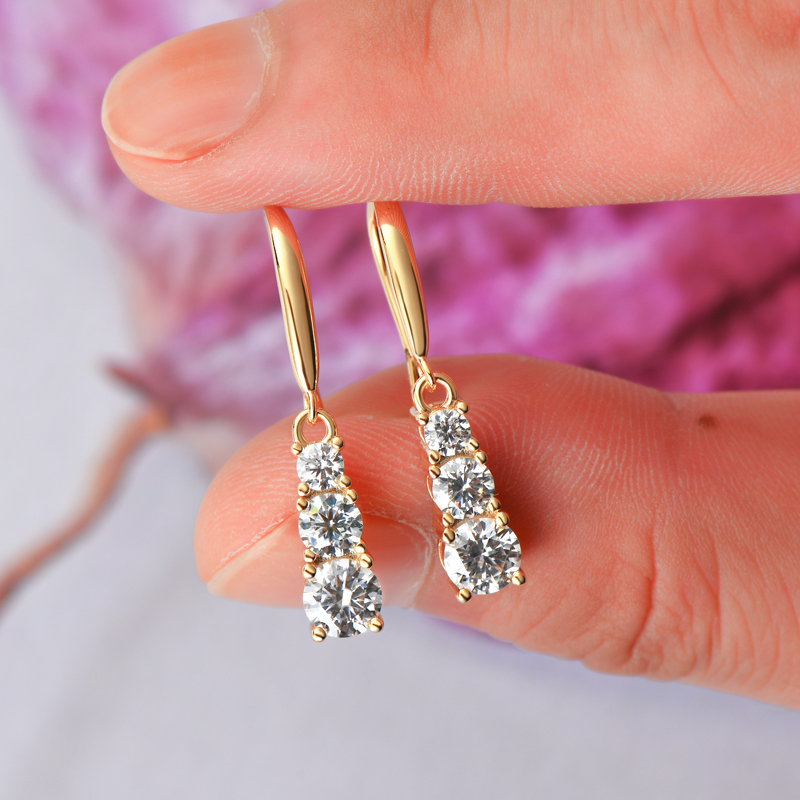 Hosszú 14K aranyozott lógós ezüst fülbevaló – 1.5 karátos Moissanite gyémánt kövekkel