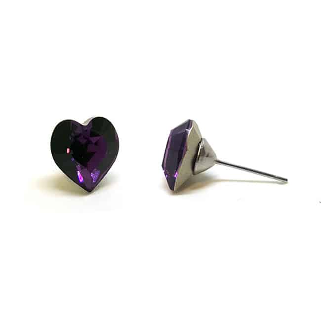Jazzy lila Swarovski® kristályos fülbevaló – Nagy szív, Amethyst