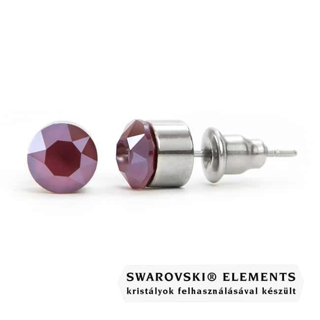Jazzy piros Swarovski® kristályos fülbevaló – Kerek foglalatos Dark Red unfollied