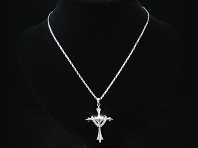 Csodálatosan kidolgozott, a kristályos kereszt medál gyönyörűen ragyog és az ezüst színű lánc tökéletesen illik hozzá.