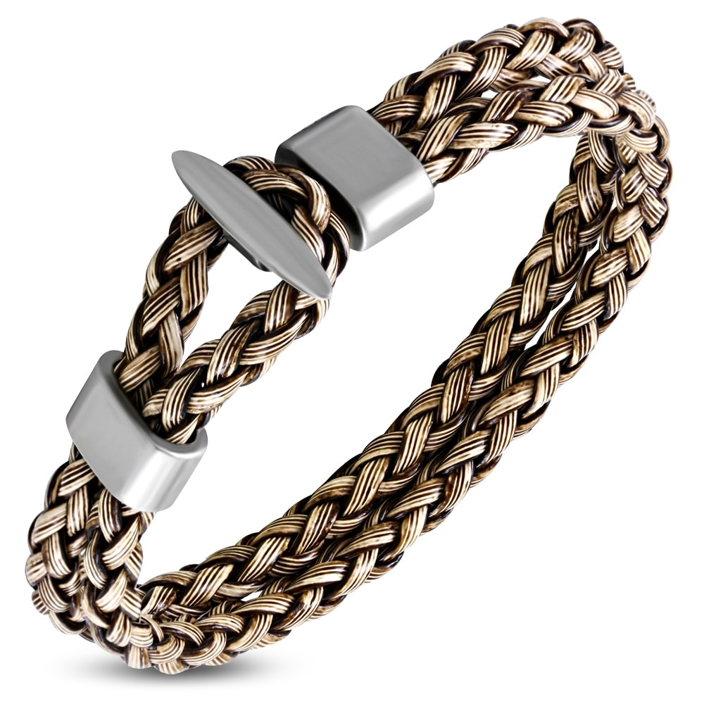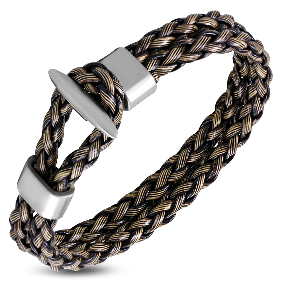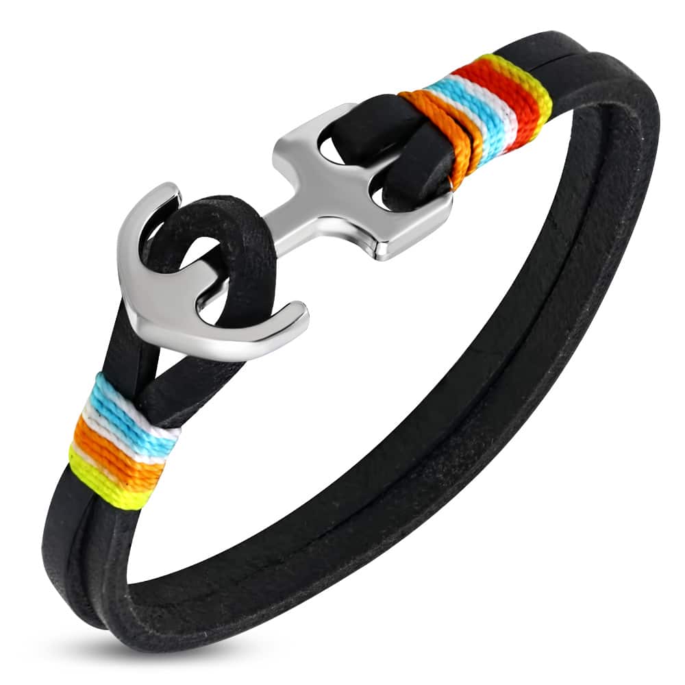 Színes fonott bőr karkötő – fekete – fehér nemesacél kapoccsal