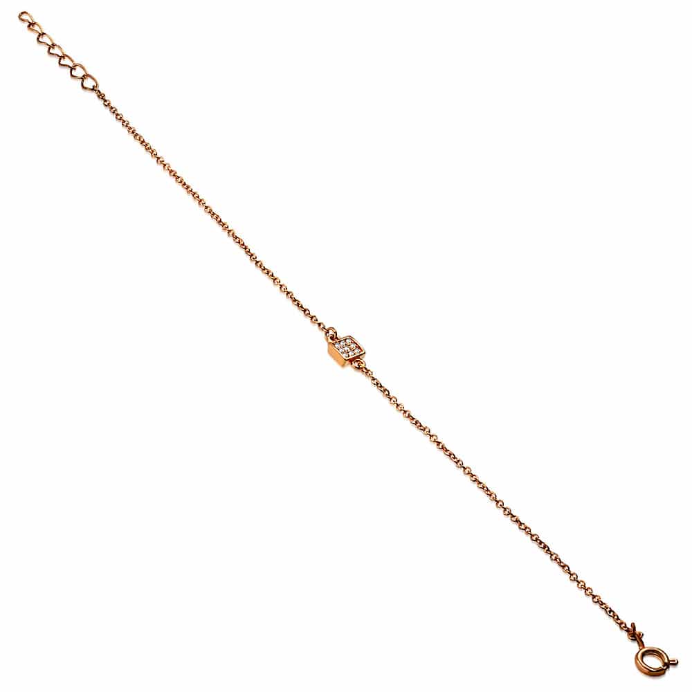 Réz színű karkötő, négyzet alakú dísszel, cirkónia kristállyal
