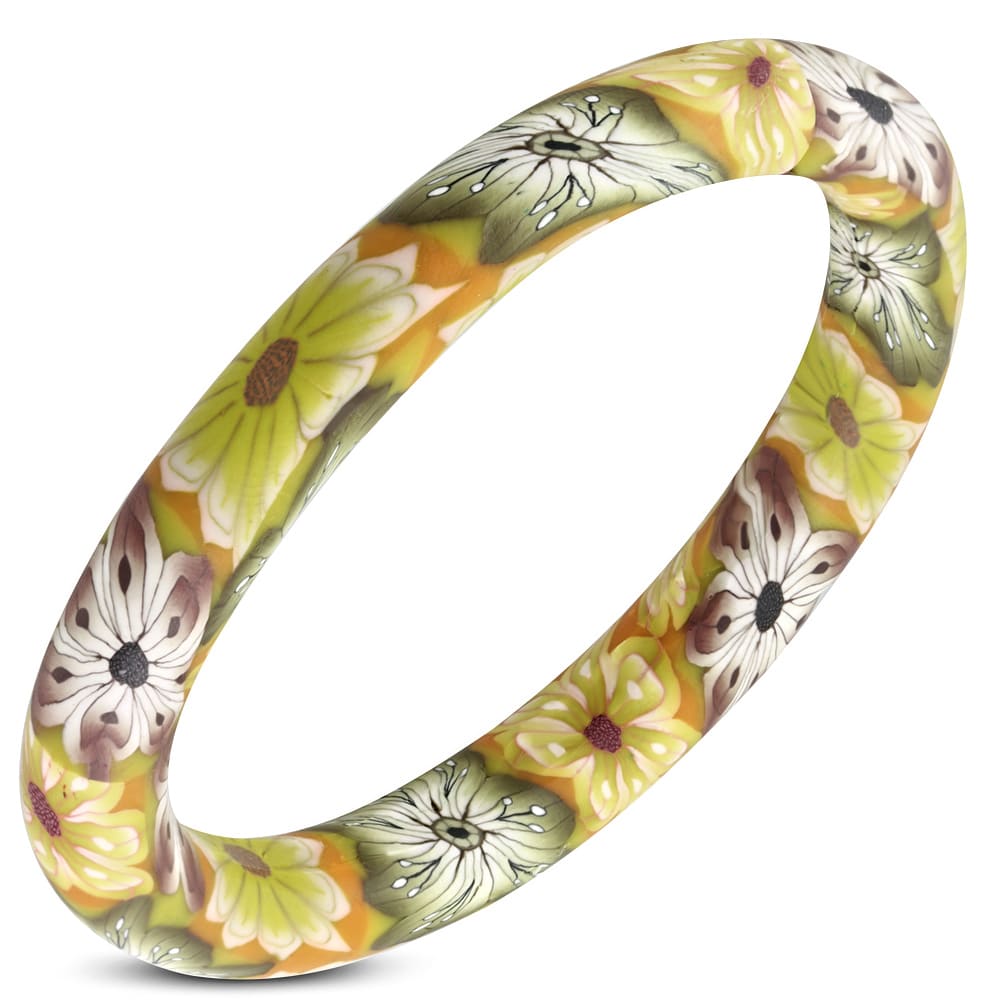 Divatos virág mintás gyöngyös, hálós bizsu karkötő – sárga