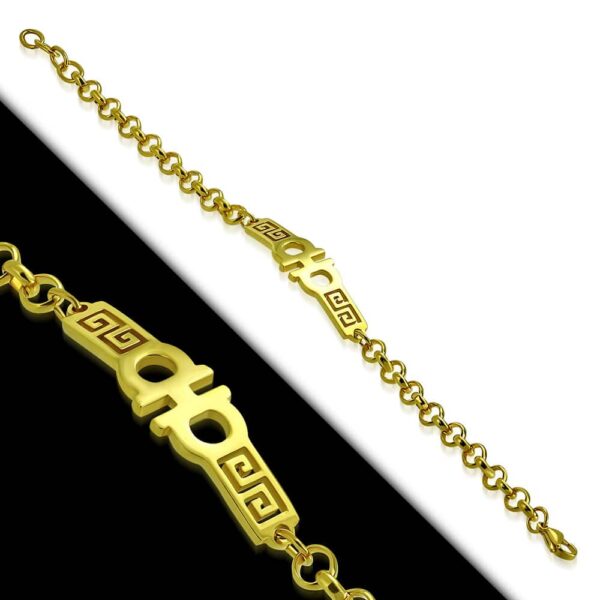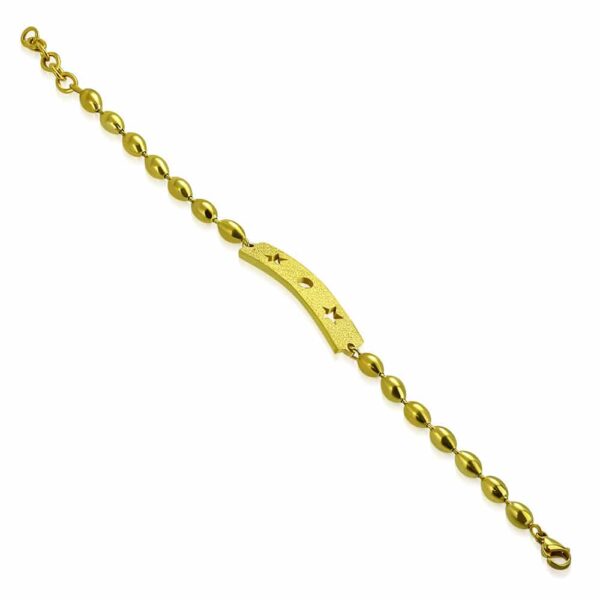 • Arany és ezüst színű, nemesacél karkötő, lapos szemekkel, gravírozható dísszelArany és ezüst színű, nemesacél karkötő, lapos szemekkel, gravírozható dísszel