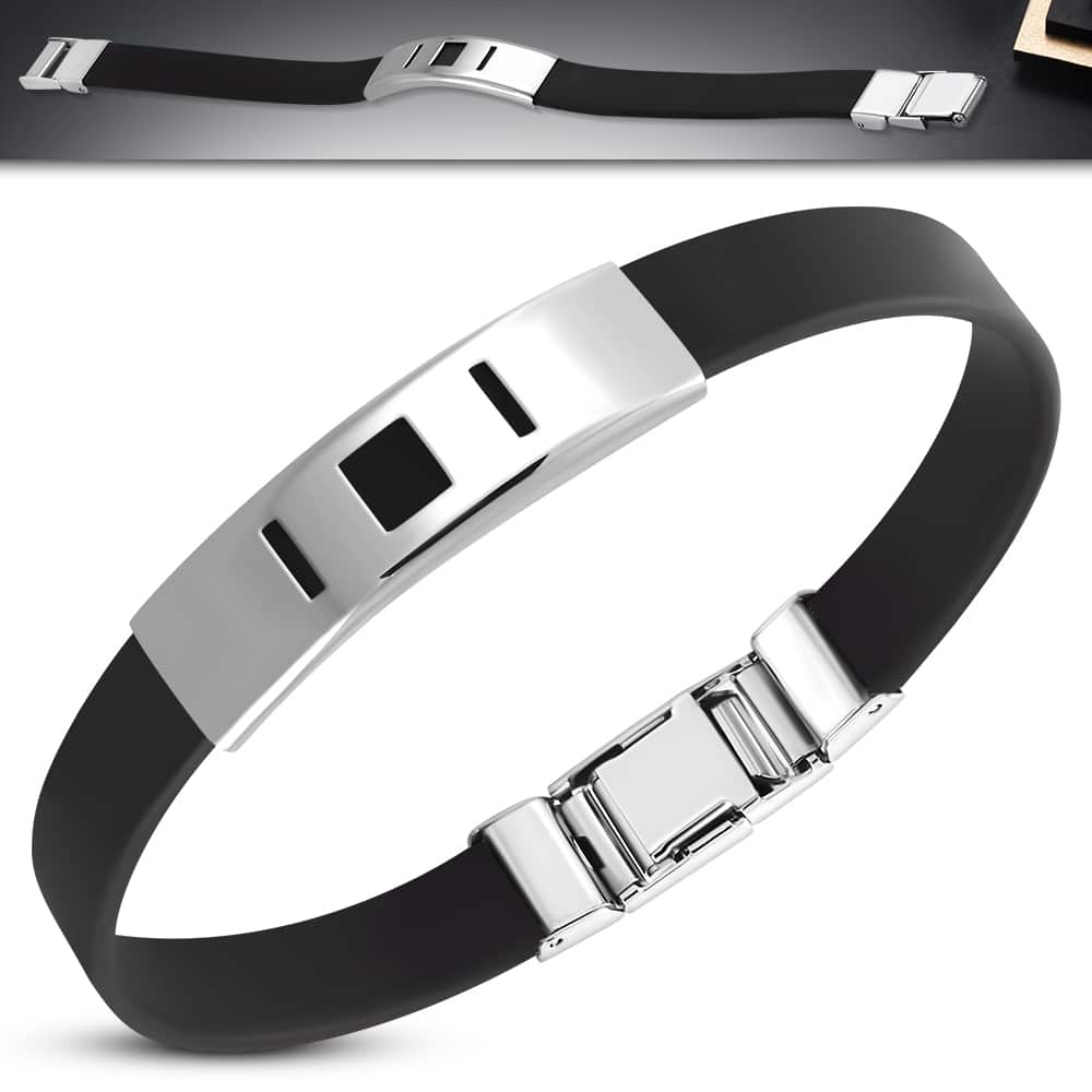 Fekete kaucsuk karkötő, ezüst színű lézer vágott mintával 2.0