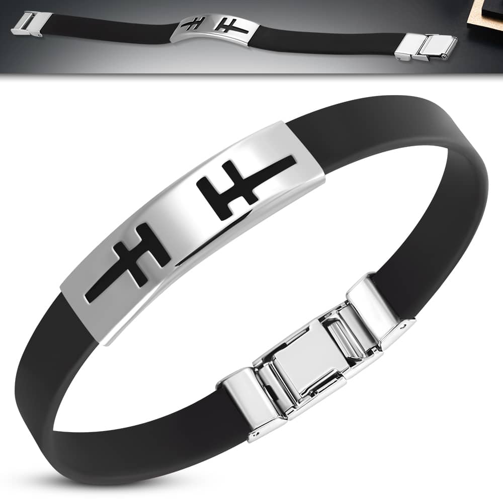 Kaucsuk karkötő, ezüst színű nemesacél és kábelhuzal dísszel
