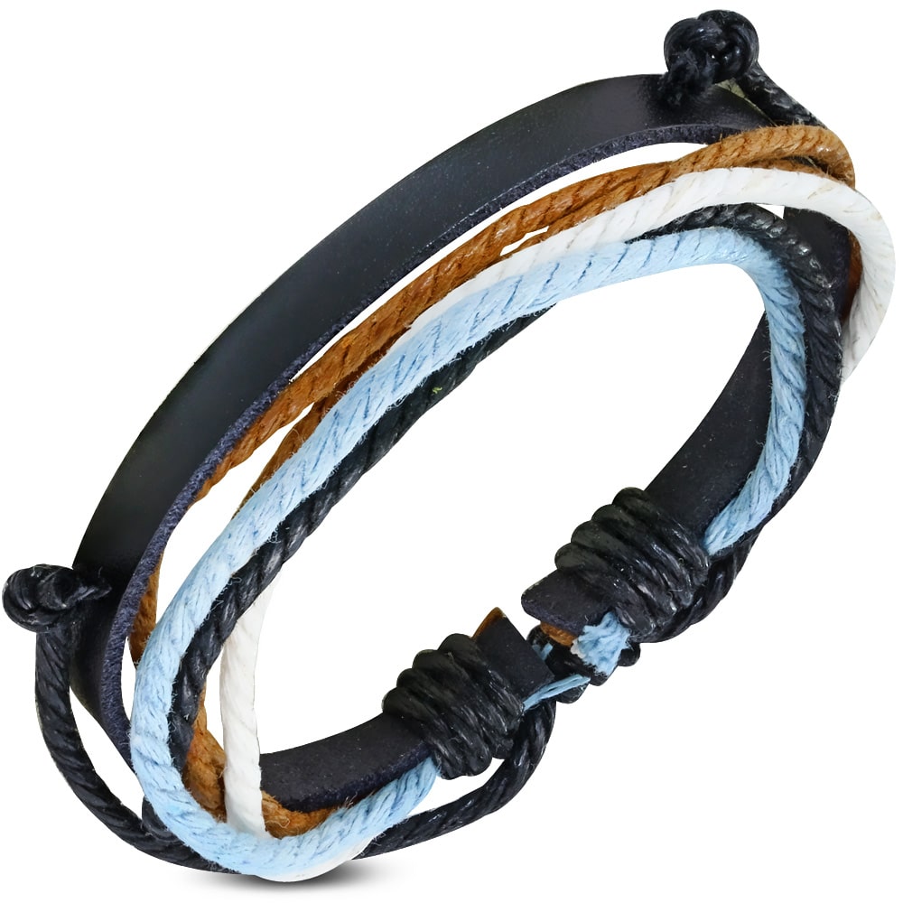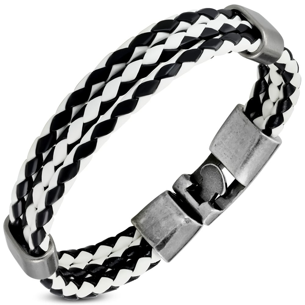 Színes fonott bőr karkötő – fekete – fehér nemesacél kapoccsal