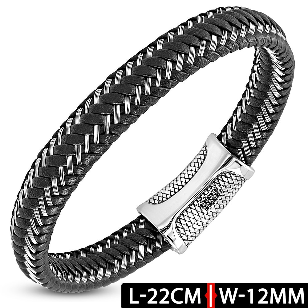 Keanu – huzal díszes fonott bőr karkötő nemesacél zárral