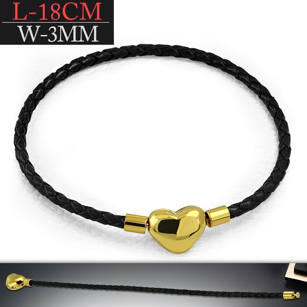 Orlu Bőr fonott karkötő nemesacél szív kapoccsal