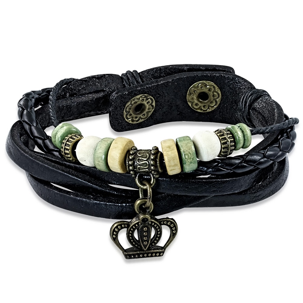 WOOD FEKETE BŐR KARKÖTŐ – korona medállal