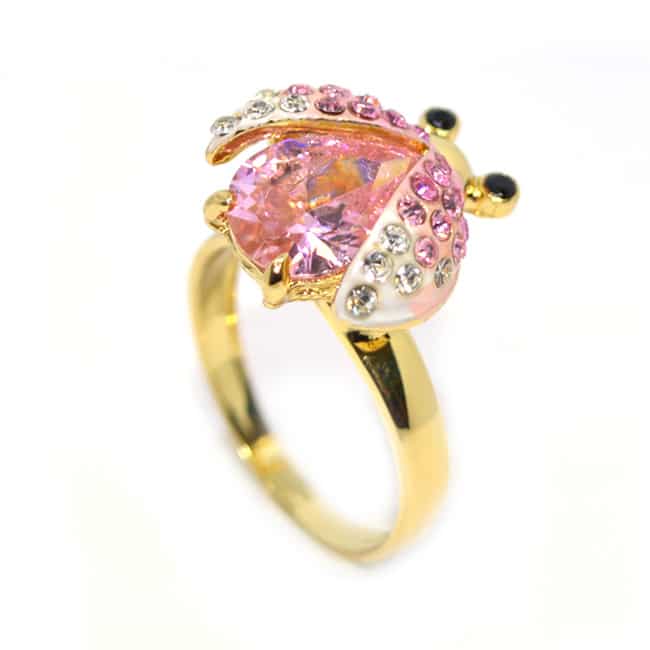 Arany színű katica kristályos állítható méretű gyűrű ajándék díszdobozban: