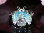 Katicabogaras kristályos gyűrű, ezüst színű ajándék díszdobozban