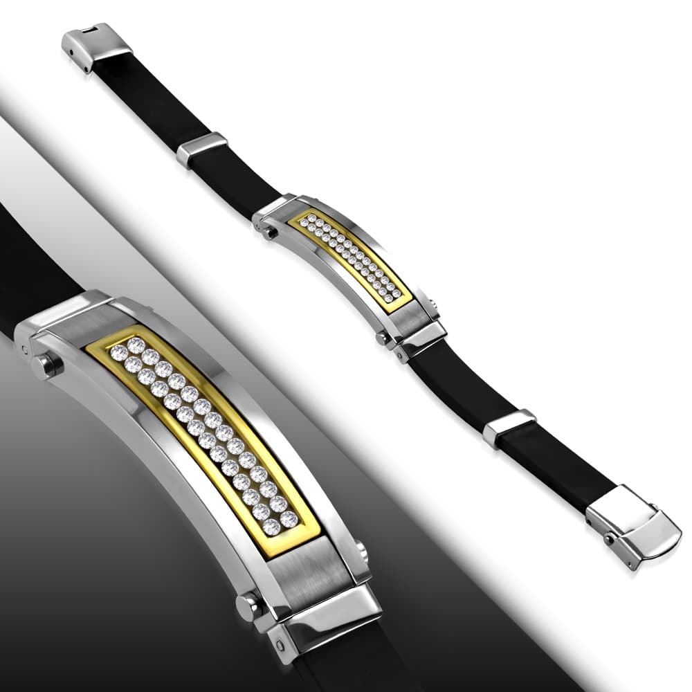 Kaucsuk karkötő, arany és ezüst színű nemesacél dísszel, cirkónia kristállyal
