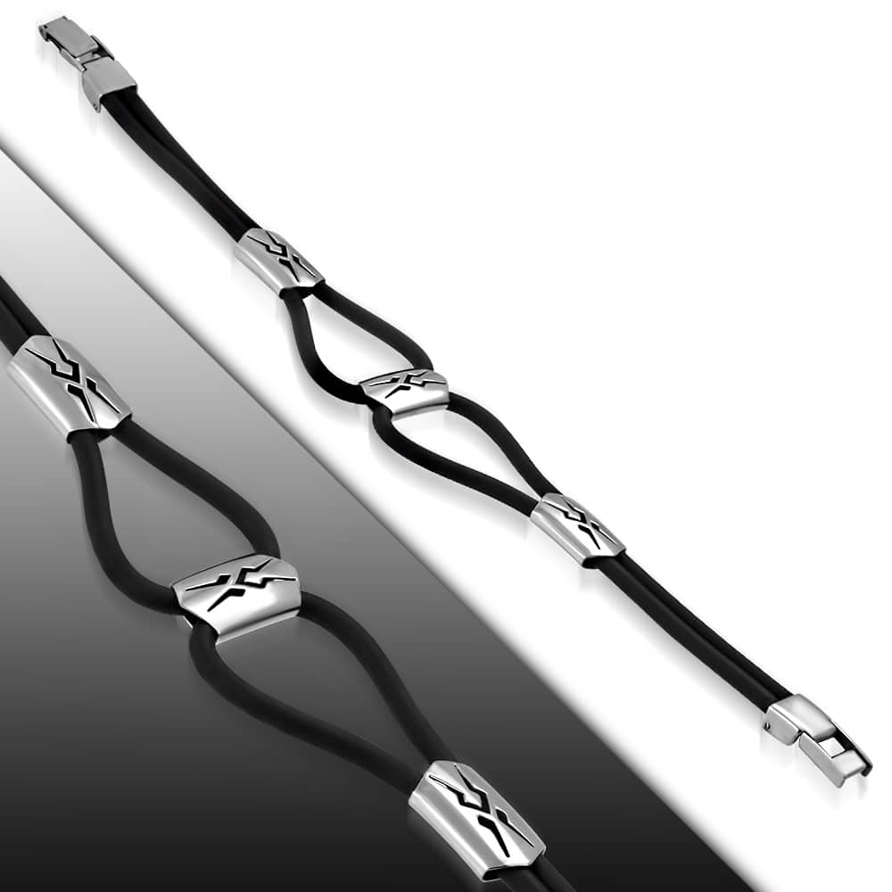 Kaucsuk karkötő, ezüst színű nonfiguratív mintájú nemesacél dísszel
